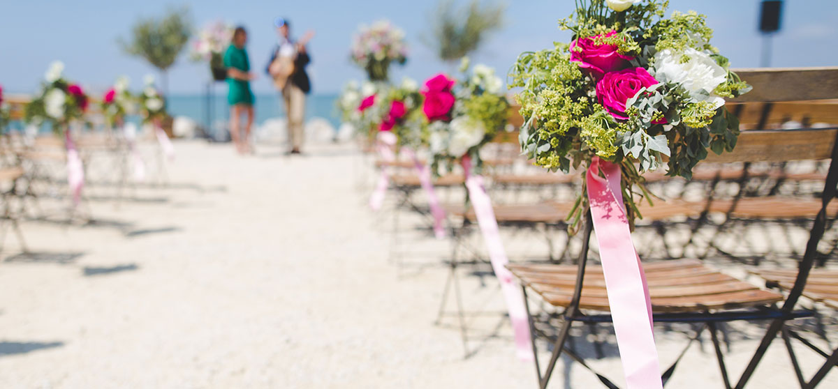 以碧蓝辽阔的大海为背景,温暖的阳光照耀在海滩上的婚礼。今天这对新人是无比的幸福和浪漫。我们为他们送上了无比浪漫的婚礼和真诚的祝福。